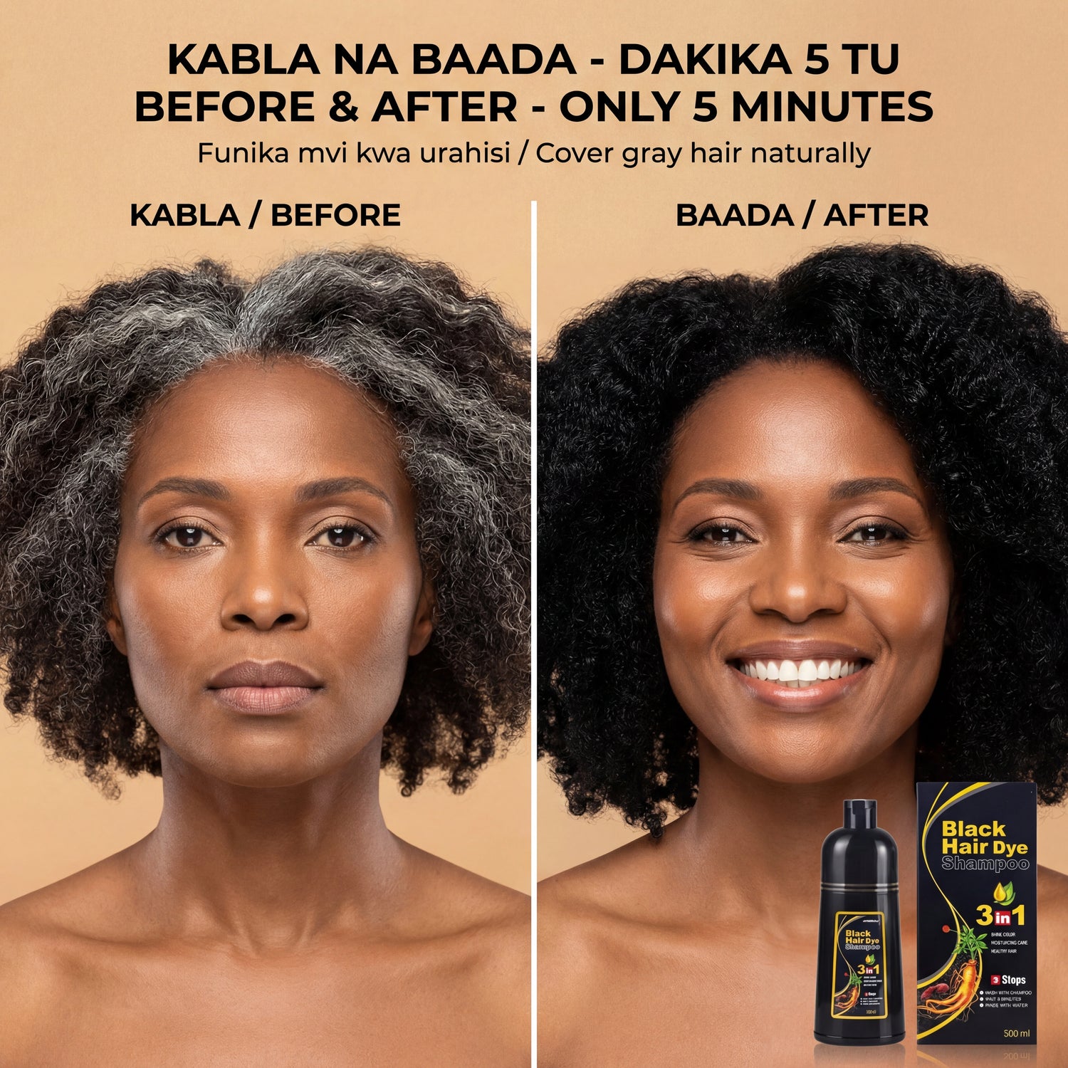 Nywele nyeupe zinaweza kufanya nywele zionekane dhaifu au zisizo sawa. Shampoo hii inasaidia kupunguza mwonekano wa nywele nyeupe na kutoa toni ya usawa zaidi na yenye kuonekana nyeusi zaidi baada ya utaratibu rahisi wa kuosha.